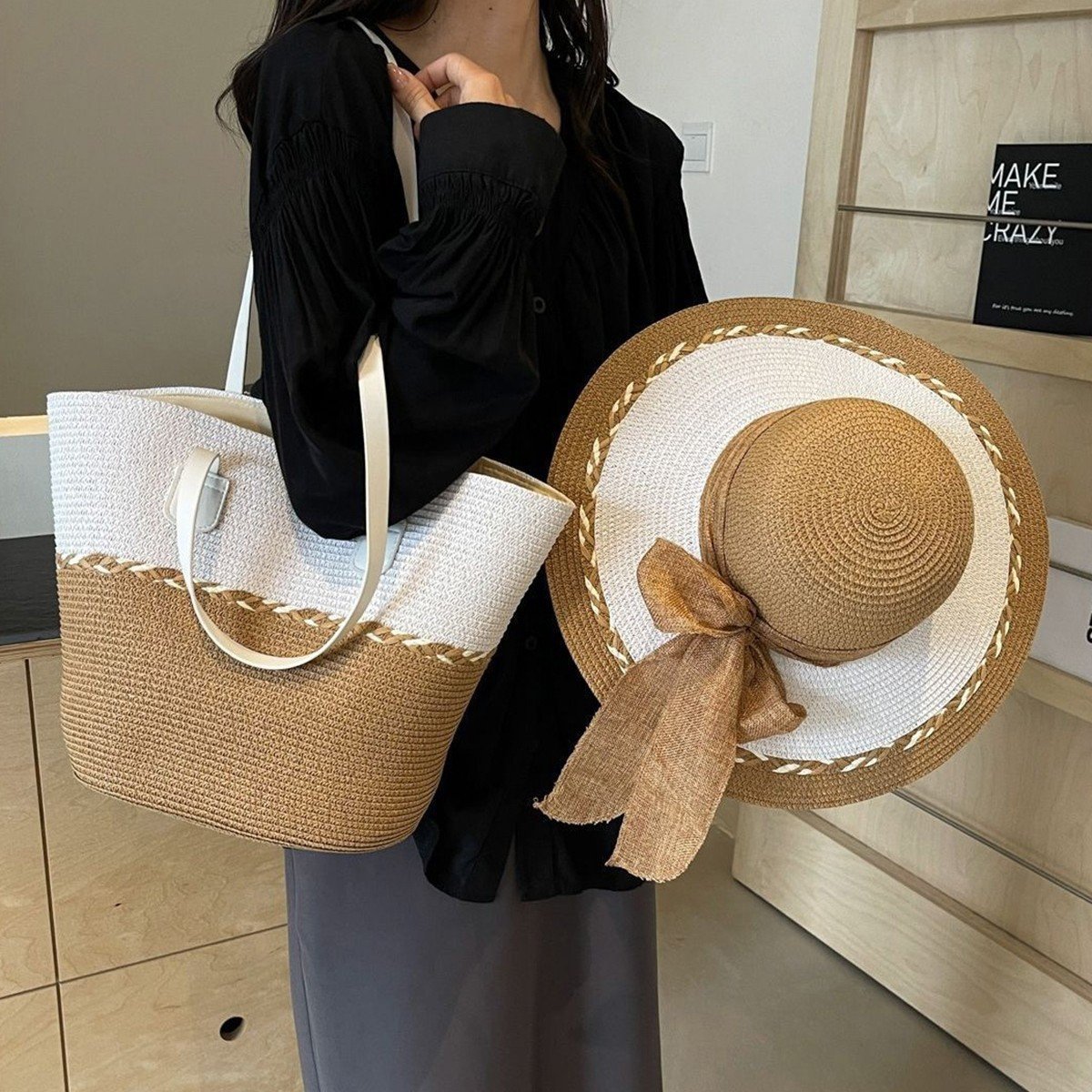Color: Beige (Bag), Cream (Bag), Pink (Bag), Light Blue (Bag), Navy Blue (Bag), Khaki (Bag), Beige (Hat), Cream (Hat), Pink (Hat), Light Blue (Hat), Navy Blue (Hat), Khaki (Hat), Beige (Set), Cream (Set), Pink (Set), Light Blue (Set), Navy Blue (Set), Khaki (Set)